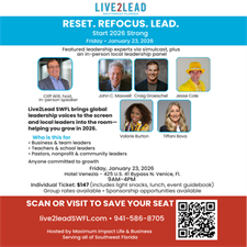 Live2Lead Southwest Florida is a one-day, in-person leadership event created for small business owners, entrepreneurs, and professionals who want to grow personally, lead more effectively, and gain new ideas for the year ahead.