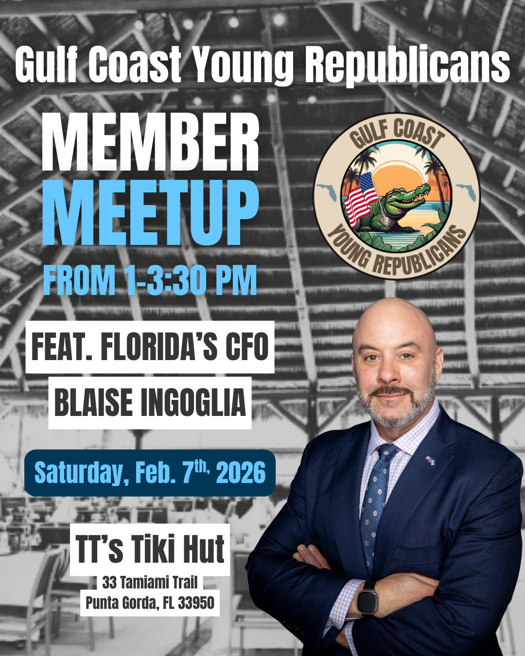 Charlotte County Republican Executive Committee and The Charlotte County Young Republicans are bringing together motivated young conservatives for an epic kickoff event you won’t want to miss. Join us Saturday, February 7th at TT’s Tiki Bar in Punta Gorda from 1-3:30 PM for an exciting evening of connection, conversation, and momentum-building for the future of the conservative movement. Special Guest Spotlight: Florida CFO Blaise Ingoglia, the state’s top financial watchdog and a leading voice behind the Florida Agency for Fiscal Oversight (FAFO). CFO Ingoglia is at the forefront of exposing wasteful government spending, fighting for smarter budgeting, and advocating for meaningful property tax relief for Floridians. View PDF Flyer. “This advertisement is a member service and is not an endorsement from or by the Charlotte County Chamber of Commerce, Inc.”